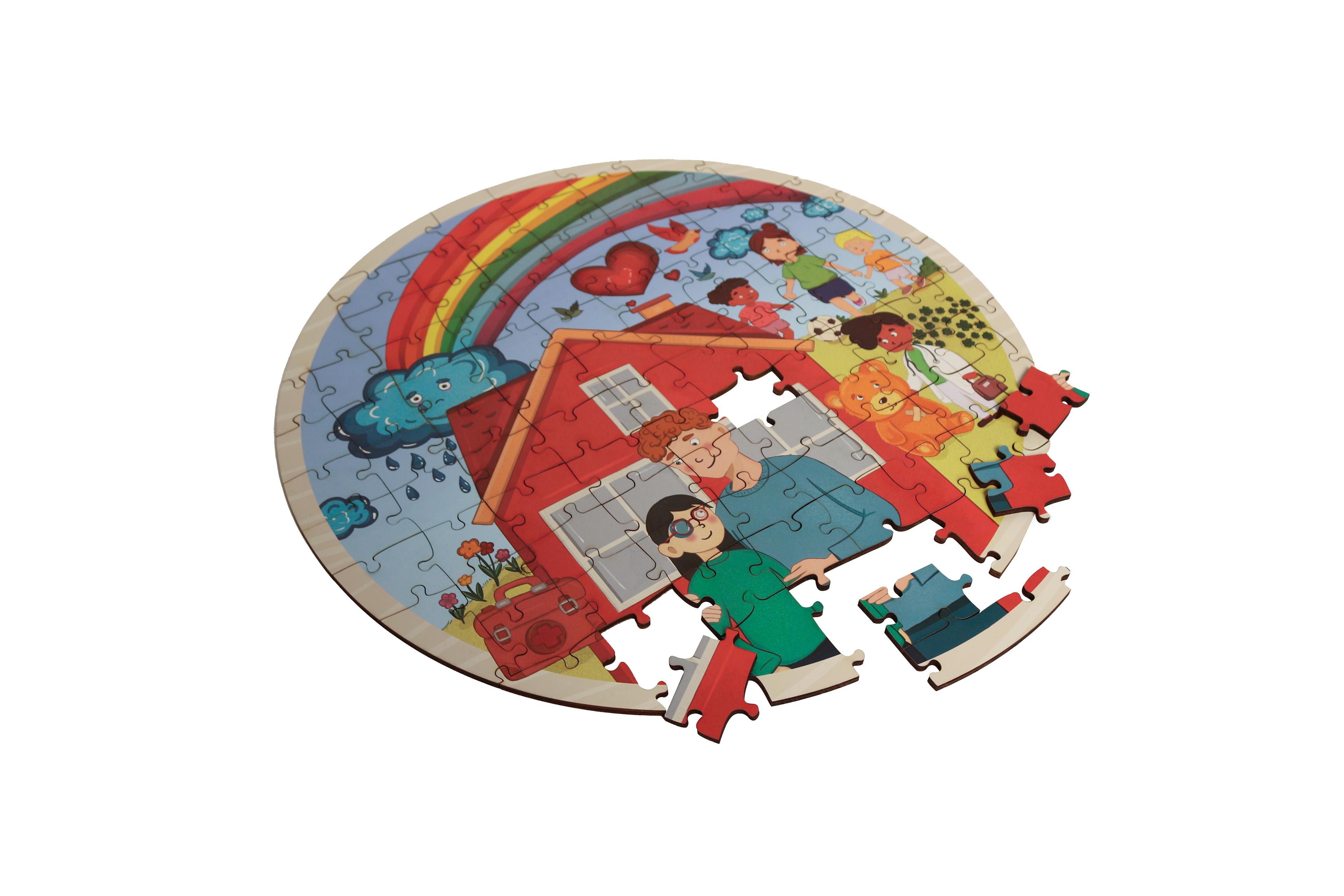Durch die außergewöhnliche, runde Form wird auch eine außergewöhnliche Interaktion eingeleitet. ANIMA eröffnet in Ihrer Familie vielleicht den Diskurs über psychische Erkrankungen, aber der Raum für offenen Austausch soll auch nach dem Puzzlen weiterhin bestehen bleiben.